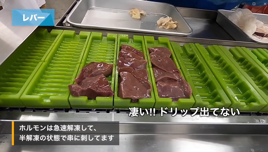 ・当社の製品は衛生管理が整った環境で専用機械を使って串打ちを行っており、串打ちの技術的品質も安定しております。